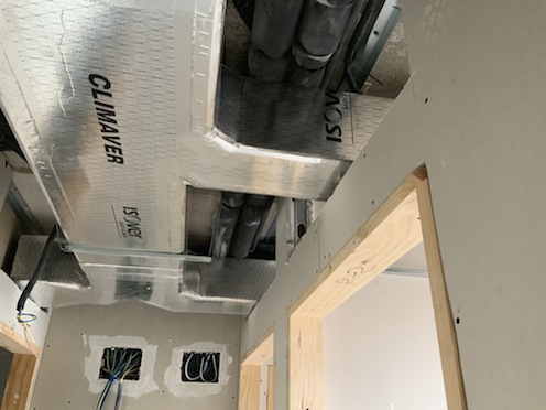 Nos gustaría destacar que el edificio tiene un aislamiento interior en el trasdosado de placas de yeso laminado (también solucionado con lana mineral). Esto hace que el edificio disponga de una “doble envolvente aislante”, una exterior y otra interior lo que refuerza y garantiza la continuidad del aislamiento, la estanqueidad de los cerramientos y la ausencia de puentes térmicos en fachadas. Para complementar este aspecto se ha cuidado especialmente la puesta en obra de las carpinterías y sus sellados.