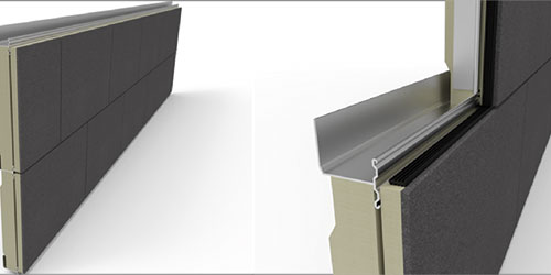 Para la rehabilitación de la fachada se ha utilizado el sistema VeturKit, compuesto por paneles formados por 80 mm de poliestireno extruido más una piel exterior de 8 mm de nuestros paneles FBR de fibrocemento coloreado en masa.