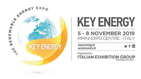 Italian Exhibition Group celebrará la XIII edición de la feria Key Energy los días 5, 6, 7, y 8 de noviembre en Rímini (Italia). Key Energy es la feria de referencia para las energías renovables en toda el área europea. Algunos de los sectores presentes serán el de la Energía Fotovoltaica y Solar, Almacenamiento y Eficiencia Energética, Sector Eólico, Ciudades Sostenibles y Mobilidad y Transporte Sostenible.