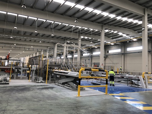 En esta nueva planta de Zaragoza se ha realizado una inversión de 60 millones de euros que fabrica placas de espesores desde 6,5 mm a 18 mm, tipo standard, antihumedad, contra el fuego, acústicas y soluciones de aislamiento térmico. Se estima una producción de 12 millones de m² de Pladur durante este año 2019, que ascenderán a 18 millones en 2020.