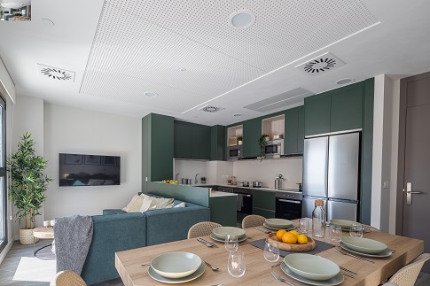 Además, se han incluido materiales de aprovisionamiento responsable y bajas emisiones en COVs y formaldehídos, para mejorar la calidad del aire interior. Se complementó con la monitorización y control de la calidad del aire interior, a través de sondas que miden de forma continua parámetros como CO2, COV y PM2,5, evitando así la emisión de sustancias peligrosas para la salud y permitiendo que el aire de las viviendas sea más saludable; es sabido que muchas de las enfermedades que se padecen hoy en día están provocadas por el aire que respiramos por lo que promotores, constructores, inversores y usuarios buscan, cada vez, edificios más sostenibles y respetuosos con el medioambiente.