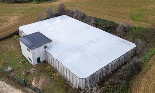 El techo exterior del tanque se impermeabilizó utilizando las láminas para cubiertas Renolit Alkorplan. En concreto, aplicamos la membrana Renolit Alkorplan F Classic 35276, una solución robusta y de fijación mecánica diseñada para resistir la intemperie.