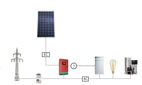 La ventaja de esta variante es que no solo se mide la energía generada por la fotovoltaica, se mide la producción sobrante después de alimentar el resto de electrodomésticos.