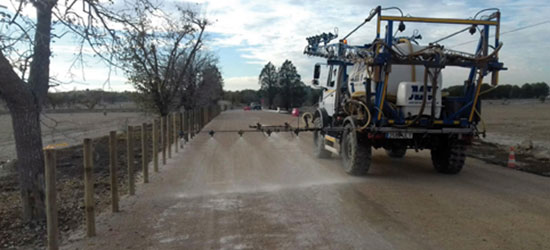 Desde tiempos inmemoriales hasta la actualidad el problema de las emisiones de polvo en superficies sin pavimentar ha sido una cuestión que se ha intentado tratar con infinidad de soluciones, unas más acertadas que otras. Una de las más utilizadas en el control de polvo en este tipo de superficies ha sido el agua, muy efectiva en el momento pero totalmente fugaz su resultado. En épocas estivales podemos estar hablando de cuestión de minutos lo que tarda la efectividad del agua en desaparecer y que el polvo vuelva a surgir.