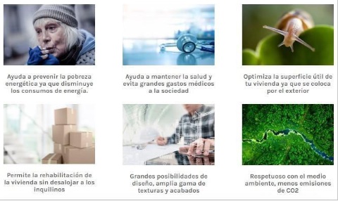Como se instala por el exterior, no resta espacio interior a la vivienda, a diferencia de los sistemas de aislamiento por el interior.