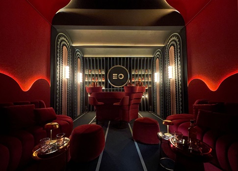 La experiencia sensorial parte de la eficacia de los paneles acústicos de ECOcero, que garantizan una absorción óptima del sonido para crear un espacio totalmente acogedor. Los paneles, desarrollados a partir de plástico PET reciclado, ofrecen además una versatilidad estética que permite su integración perfecta en el diseño global del ambiente, añadiendo sofisticación y armonía. "El uso de los paneles de ECOcero refuerzan el carácter íntimo del ‘speakeasy’, término cuyo origen se remonta a las primeras décadas del siglo XX, en la cosmopolita ciudad de Nueva York, para identificar los bares clandestinos del momento”, afirma la propia Alejandra Pombo.