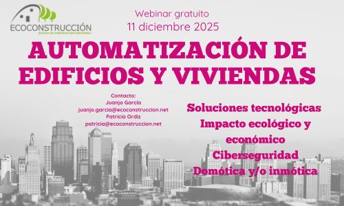 La revista Ecoconstrucción anuncia la celebración del webinar gratuito “Automatización en edificios y viviendas”, que tendrá lugar el 11 de diciembre a las 10:00 h a través de Zoom. El encuentro analizará cómo las tecnologías de automatización se están integrando en viviendas y edificios para optimizar la gestión energética, mejorar el confort de los usuarios y reforzar la seguridad mediante sistemas inteligentes. La sesión ofrecerá una visión técnica y actualizada s