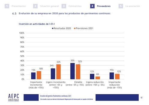 Entre los resultados obtenidos en este Estudio sobre los pavimentos continuos 2021, destaca la previsión positiva de la mayoría de las empresas contratistas y proveedoras que han participado.