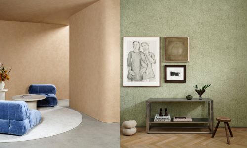 - Grezzo. La uni refinada Grezzo incorpora escamas reales de basalto volcánico, creando un revestimiento que refleja la luz suavemente, con una elegancia orgánica. Los tonos inspirados en piedras naturales potencian el carácter puro y robusto del material,haciendo de cada pared un lienzo lleno de vida.