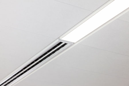 El sistema mejorado TechZone de Armstrong permite también satisfacer la creciente tendencia en la instalación de la iluminación lineal. Armstrong se ha asociado con XAL Iluminación para hacer más fácil que nunca crear diseños singulares con alturas de techo mayores, con una nula interferencia en el plenum, creando composiciones centrales -continuas o discontinuas- que proporcionan una estética limpia y muy moderna.