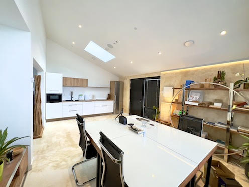 Uno de los materiales de acabado más importante para nosotros y que más ganas teníamos de instalar, ha sido el utilizado en el suelo de toda la planta baja, me refiero al pavimento continuo de “yeso alabastrino de Teruel” denominado como yeso “Nohuki”, pulido y acabado con ceras naturales de Yesuba. Material 100 % natural, que regula la humedad, absorbe CO2 y mejora la calidad de aire interior, además de aportar una sensación increíble cuando se camina sobre el, especialmente descalzo.