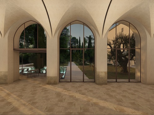 La propuesta apuesta por la restauración de la parte sur del claustro, ya que el actual fue construido a mediados del siglo XX y no obedece a criterios de restitución histórica ni formal. La intervención no intenta una reproducción total de la zona, sino la recuperación de las características más importantes de cada uno de los momentos históricos, adoptando finalmente una imagen actual aglutinadora de este proceso constructivo. El claustro se concibe como un espacio de encuentro y reflexión. Se propone una adaptación del original, evocando las características históricas del espacio y con respecto a la vegetación existente de valor. Combina espacios de detalle con otras superficies abiertas polivalentes, donde el agua tiene protagonismo.