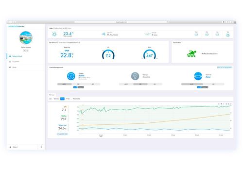 Este dispositivo en red controla el CL, el PH y Br de manera automática y si detecta que alguno de ellos está alterado, activa las bombas inyectoras que de manera inmediata y autónoma suministran el producto necesario para equilibrar los niveles, además de mandar una alerta al usuario o encargado del mantenimiento.