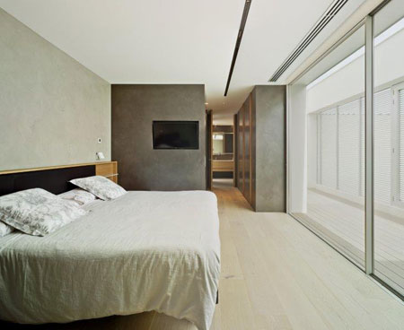La planta superior de la vivienda da cobijo a una sala de estar y zona de televisión, así como a tres amplios dormitorios. Cada uno de estos últimos, orientado a una fachada diferente, dispone de baño privado y terraza. Todas estas estancias quedan conectadas entre sí por un distribuidor que las articula.