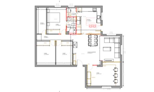 El diseño de la distribución de calor incluye la planificación de los conductos de canalización, que llevan el aire caliente a distintas estancias, procurando minimizar las pérdidas térmicas. Las rejillas de salida del aire deben ubicarse estratégicamente, lejos de puertas o ventanas, para maximizar la eficiencia del calentamiento. En este proyecto, los conductos se instalaron en el bajo cubierta, lo que permitió ocultar las tuberías y mejorar la distribución de calor (ver imagen 3). Este modelo de estufa ofrece una salida frontal para calentar la estancia principal y una salida canalizable con un alcance de hasta 7 metros horizontales sin necesidad de motores auxiliares.