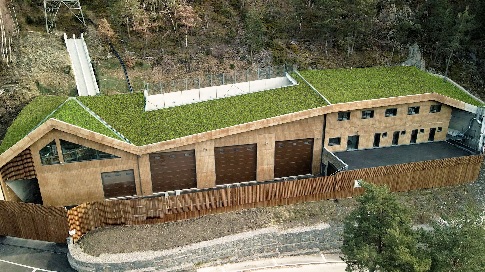 Cubierta ajardinada extensiva invertida para obra nueva en la Central Eléctrica La Gonarda (Andorra), con impermeabilización bituminosa bicapa y acabado con el sistema construcivo Sopranature. Este proyecto supone una integración con el entorno paisajístico natural de la zona gracias a la cubierta vegetal.