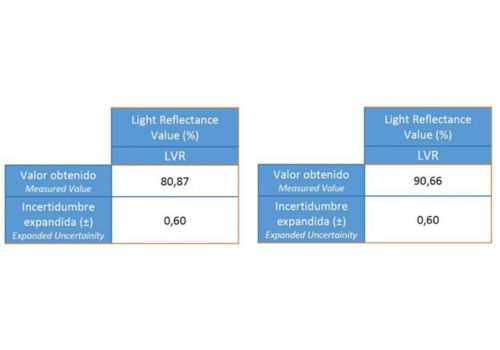 Según señala la norma, con este test se determina la cantidad de luz visible reflejada por el producto superficial en cada dirección; la medida de esta luz reflejada en diferentes longitudes de onda en el rango visible, ponderada para la sensibilidad de la luz del ojo humano, es el valor de reflectancia de la luz.