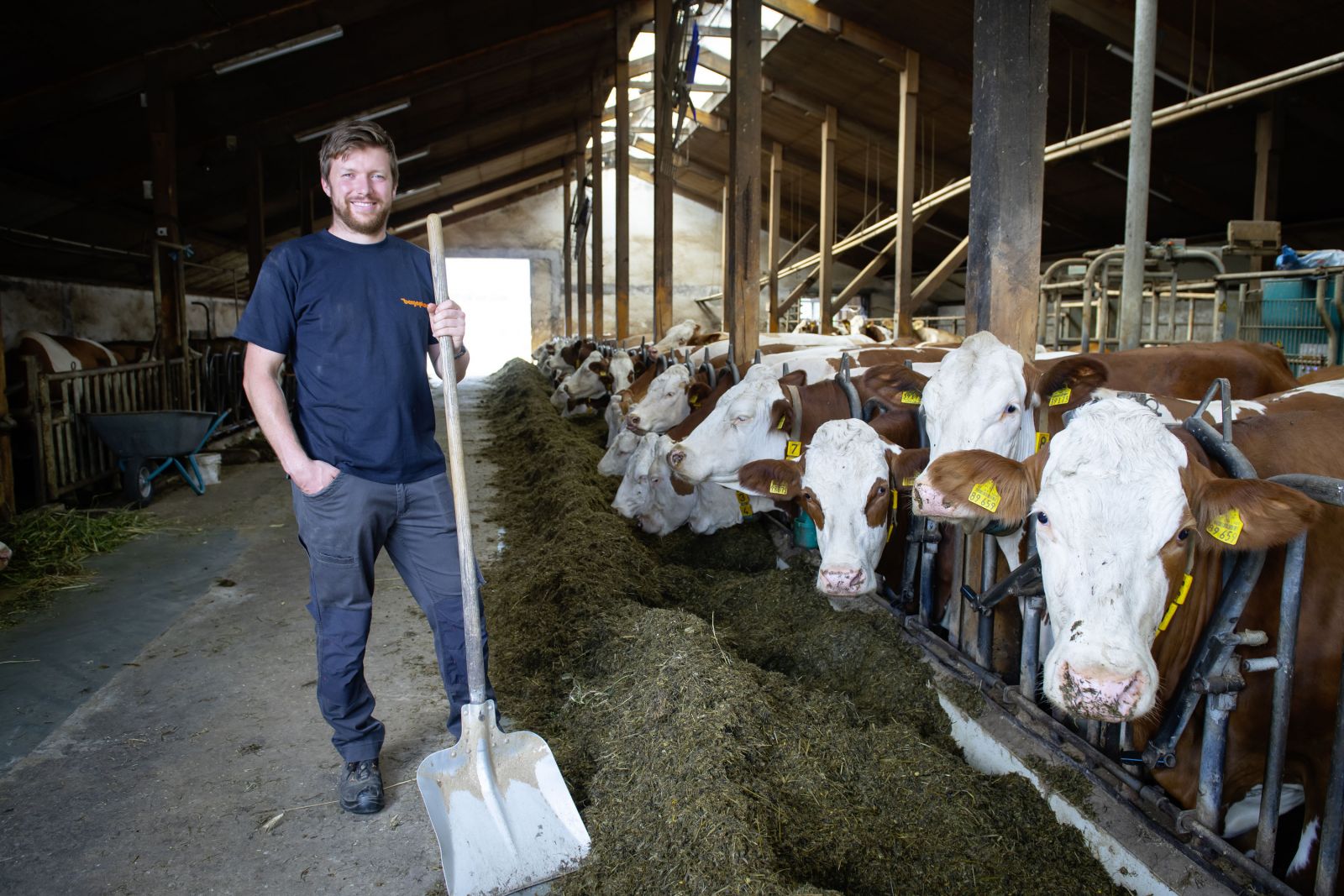 La instalación fotovoltaica con componentes de KOSTAL montada en el tejado del establo para vacuno de leche en octubre de 2021 es el primer sistema de energía solar en la granja de Kuhn GbR, quizá una señal visible de un cambio generacional y más sostenibilidad, también en el ámbito de la energía. «Que nosotros mismos generemos nuestra propia electricidad con la fotovoltaica es algo que siempre me ha interesado. Sin embargo, en los primeros tiempos del auge de la energía fotovoltaica, no lo conseguimos. Nos lo planteamos, pero en aquel momento la atención se centraba en el tema de la inyección. Ahora la energía fotovoltaica y los acumuladores de energía forman parte de la gestión sostenible de la granja», explica el agricultor.
