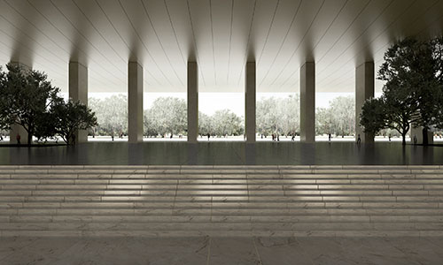 Los pilares del conjunto arquitectónico serán recubiertos por un revestimiento de paneles de terracota, herencia de la arquitectura tradicional local.