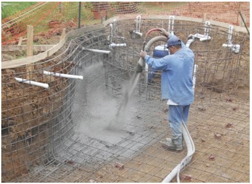 Las propiedades del hormigón proyectado o gunitado son las más adecuadas para la construcción del vaso, pues permite conseguir un muro continuo, con mayor resistencia y menor espesor, para soportar y contener la presión ejercida por el terreno, ofreciendo una impermeabilidad óptima gracias a la baja porosidad.