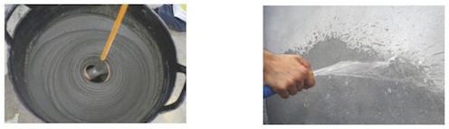 Para la aplicación del mortero impermeable flexible, bien sea mono o bicomponente, es necesario seguir estrictamente las instrucciones de amasado que recomienda el fabricante. Es importante respetar las relaciones de mezcla, así como el tipo y los tiempos de amasado recomendados.