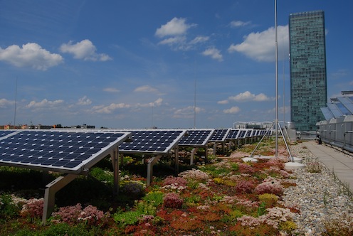 Los paneles solares colocados sobre una cubierta verde pueden generar hasta un 16 % más de energía. Los paneles fotovoltaicos disminuyen su rendimiento a partir de 25ºC de temperatura ambiental. La vegetación actúa como sistema natural de enfriamiento de la superficie de la cubierta y en consecuencia de los paneles solares.