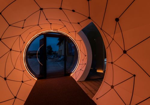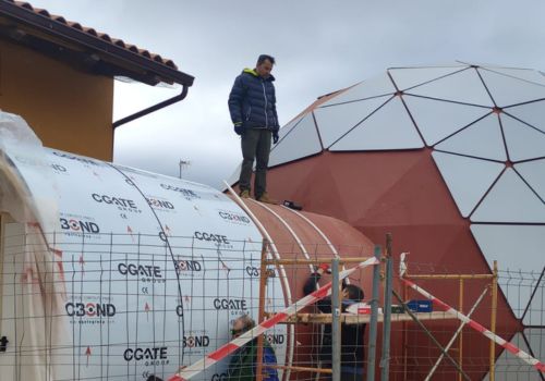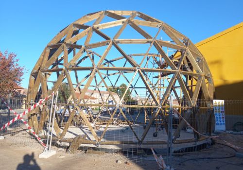 Ecoproyecta ha diseñado un nuevo domo geodésico y ecológico para crear un pequeño planetario en Alcoba de los Montes (Ciudad Real). El encargo proviene del propio ayuntamiento de Alcoba y se trata de ampliar un edificio existente, un antiguo silo, que se restaura para convertirse en un albergue y centro social. La ampliación se realiza con una cúpula geodésica de 8,8 m de diámetro y un corredor cilíndrico que sirve de entrada y conecta con el antiguo silo.