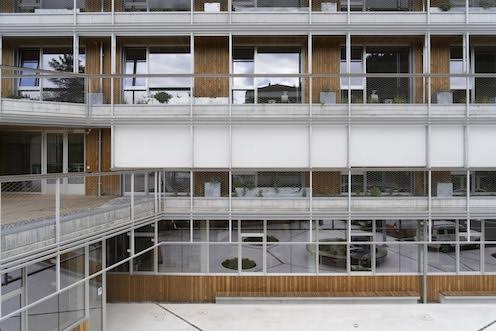 El ritmo y orden de pilares del edificio reformado en conjunto con la estructura de ampliación responden a la idea de ofrecer espacios intermedios más o menos indefinidos en su uso.