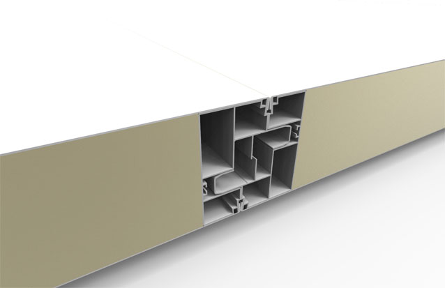 Para realizar el machihembrado, los paneles Speed Dry integran un perfil de PVC con tres cámaras tubulares que dotan al panel de una gran rigidez, una cámara seca que permite el atornillado desde el interior y previene la corrosión, una cuña de auto-posicionamiento que garantiza el nivel entre paneles y una vía de drenaje para evacuar la condensación.