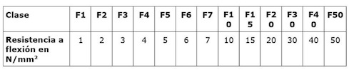 Se indicará como mínimo las clases de Compresión C y Flexión F; y si se trata de acabado de suelos, es decir que el propio recrecido es la capa final, se añadirá la resistencia al desgaste AR.
