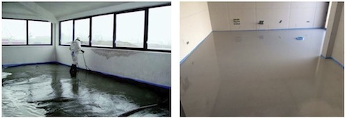 Mortero de cemento para Acabado de suelo de 40 N/mm2, resistencia a flexión 10 N/mm2 y resistencia al desgaste hasta 400 μm.