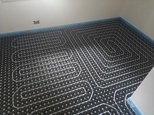 En este proyecto se ha tenido especialmente en cuenta la eficiencia energética. Entre otras medidas se ha incorporado la Climatización Invisible por suelo radiante de Uponor con aerometría y un sistema de control domótico. Para la propiedad era necesario encontrar soluciones integradas para tener una climatización prácticamente invisible sin perder altura en los espacios. Para respetar los distintos pavimentos y alturas entre forjados se ha optado por combinar la solución de reforma de bajo espesor Uponor Minitec y la solución de Autofijación Uponor Klett. Se puede destacar del sistema Uponor Minitec, que ha permitido la instalación de un sistema radiante en 2 centímetros de altura, dejando el mismo mortero visto como pavimento final.
