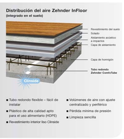 La multinacional Zehnder lanza dos innovadores sistemas de distribución de aire fresco y limpio a través del suelo: Zehnder OnFloor y Zehnder InFloor.