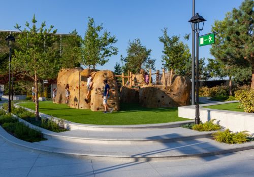 No solo uno, hemos creado hasta 4 ecosistemas distintos. El “Barco Pirata” en la isla desierta, la “Laguna” con la fuente interactiva, el “Rocódromo” de La Sierra de Guadarrama y el “Jardín Secreto” y su cascada de 10 m de altura.