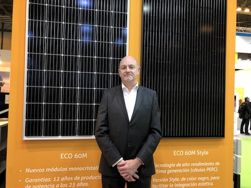 Hemos traído los paneles de integración, los módulos de alta potencia ECO de vidrio polímero, y además presentamos el acuerdo al que hemos llegado con BMW para tener una solución conjunta de movilidad con integración de fotovoltaica.