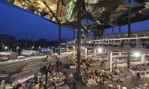 El mercado de los Encants de la ciudad condal, promovido por Mercats de Barcelona y construido en 2013, es un equipamiento público que alberga la venta de productos de segunda mano. Un proyecto enmarcado en la reforma de la plaza de las Glorias y el eje de la Meridiana de Barcelona, que supuso una iniciativa para mejorar la movilidad y fomentar el uso del transporte público.