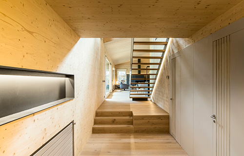 Para lograr la integración de este proyecto en la zona, se utilizaron los mismos materiales de la construcción del lugar debido a la exigente normativa de la zona que obliga a conservar los materiales tradicionales de la aldea en las reformas: piedra para la fachada, teja para la cubierta y madera (pino negro) para el interior del espacio como material estructural. A estos tres materiales se les sumó el hierro, con el cual se diseñaron las ventanas, los canalones de las cubiertas, luminarias en el interior aportando orden y singularidad a los detalles interiores, además de la chimenea, las escaleras y otros remates.