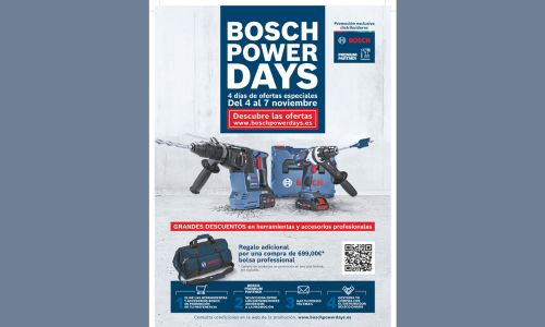 Con el objetivo de apoyar a los profesionales, Bosch celebrará del 4 al 7 de noviembre la primera edición de los Bosch Power Days, una iniciativa que ofrecerá grandes descuentos exclusivos en herramientas profesionales, de medición, accesorios y soluciones de jardín profesional. También se incluyen novedades y combo kits a batería de 18V con la obtención de dos herramientas o más con baterías y cargador, preparados para dar respuesta a trabajos profesionales específicos.