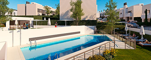 Colmenar 02 contempla la construcción de 43 viviendas unifamiliar adosadas y pareadas con certificación energética A de 3 o 4 dormitorios, integradas en una urbanización cerrada con piscina y zona verde con área de juegos infantiles.