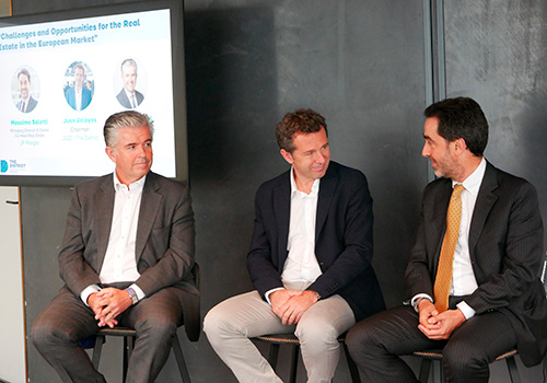 El escenario inmobiliario europeo empezará a estabilizarse a partir de mediados de 2024. Esta es la principal conclusión que se puede extraer del encuentro que ha organizado The District en Londres y que ha contado con directivos de grandes empresas de capital de la talla de Massimo Saletti, Managing Director & Global Co-Head Real Estate en JP Morgan, y Jonathan Hull, Head of EMEA Clients en CBRE. Ambos han analizado la evolución que seguirá el panorama financiero durante los próximos meses con el foco puesto en la incertidumbre generalizada que se vive actualmente en los países comunitarios.