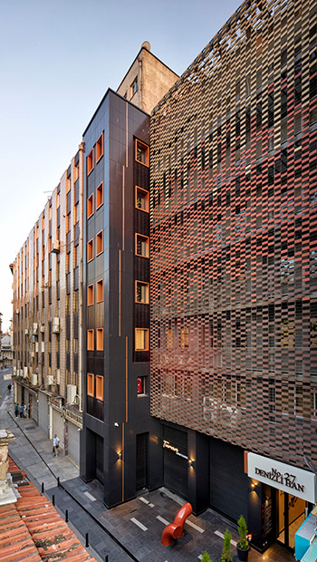El tejido cerámico Flexbrick ha sido un elemento clave en la rehabilitación del edificio del antiguo hotel DENIZLI HAN situado en un barrio antiguo de Estambul. El estudio Buun Motto, con sede en la misma ciudad, se decidió por Flexbrick para rejuvenecer la estética del edificio (situado entre medianeras). Entre sus prioridades estaba mantener la belleza artística de los edificios de la zona.
