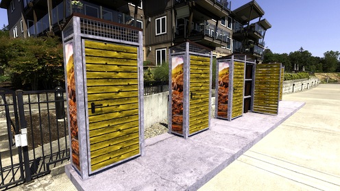 Entre el mobiliario urbano sostenible más demandado encontramos las áreas de emergencia. Se trata de módulos de madera ideados para proteger los contenedores y evitar que estos afecten a la estética del entorno. Cuentan con paneles solares para alimentar los sistemas electrónicos como las cámaras de videovigilancia o los cierres de las puertas. Hay que destacar que su diseño permite modificar su emplazamiento fácilmente.