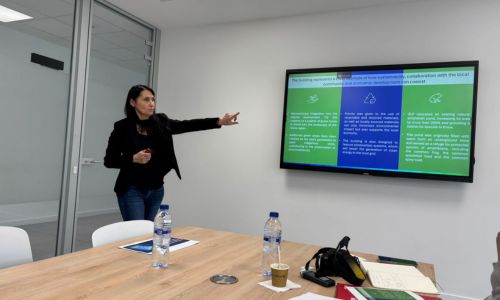 “El edificio representa un claro ejemplo de cómo pueden coexistir la sostenibilidad y la colaboración con la comunidad local y el desarrollo económico”, explicó Laura Masiero. Para ello, el edificio es una integración armoniosa en el entorno natural. También, se dio prioridad al uso de materiales reciclables y reciclados, así como de materiales de origen local.
