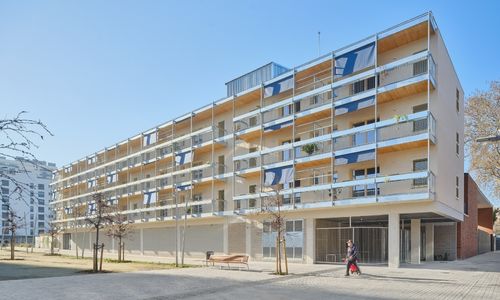 Este primer premio fue para "24 viviendas dotacionales industrializadas y de bajas emisiones de CO2", en Sant Martí (Barcelona), de Martí Sanz Ausàs + COMA Arquitectura.