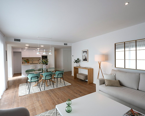 Para Luis Miguel Molla, las claves del éxito comercial del proyecto han sido tanto la calidad arquitectónica como los acabados de los inmuebles, que hacen que no haya nada comparable en todo el PAU-1 de Alicante. AEDAS Homes ha amueblado alguna de estas viviendas listas para entrar a vivir para que los interesados puedan ver una recreación de cómo será su nueva casa y no tengan que imaginarla.
