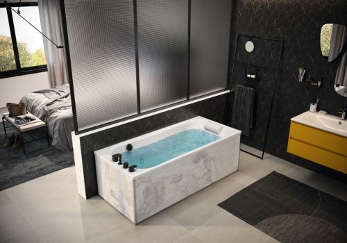 La nueva bañera de hidromasaje Zumba de Kinedo tiene líneas muy modernas, con una geometría simple y lineal. Los estrechos pasamanos le confieren ligereza y permiten maximizar su espacio interior. De esta forma, se podrá disfrutar al máximo de uno de los 6 sistemas de hidromasaje disponibles. Y porque también el diseño es importante, esta bañera está disponible en acabado interior mate o brillante y hay gran variedad de faldones para adaptarse a todos los estilos de cuarto de baño.