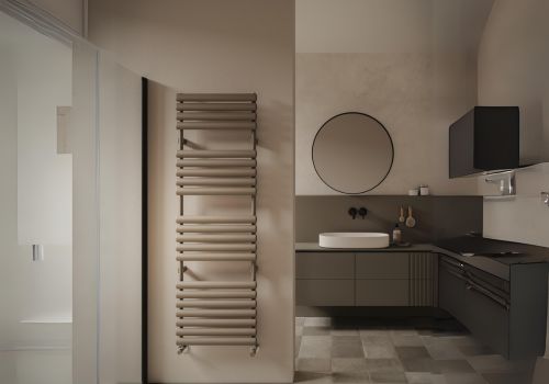 El radiador toallero ELLIPSIS_B de IRSAP, disponible en diversas dimensiones y colores personalizables, combina diseño contemporáneo con alto rendimiento. Diseñado para adaptarse a diferentes ambientes, desde baños modernos hasta espacios de bienestar, este radiador delgado y elegante se integra con sistemas de baja temperatura y está disponible en una versión mixta respetuosa con el medio ambiente.