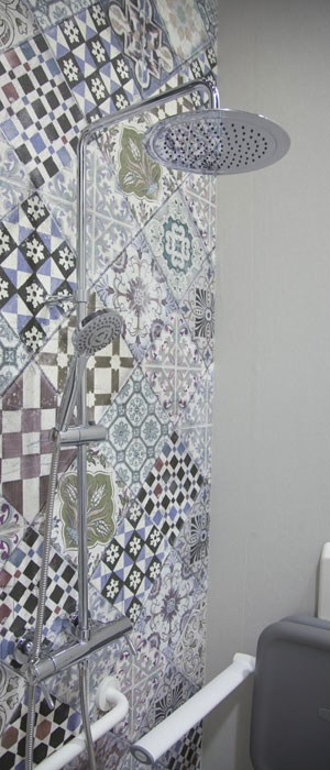 Para la ocasión se instaló el conjunto termostático gran ducha con columna fija BLAUTHERM ref. 9448 RP240 con maneta medical de la empresa.