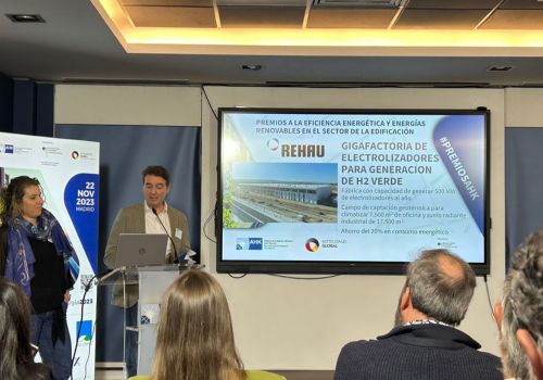 Industrias REHAU ha sido premiada por su proyecto en la gigafactoría de electrolizadores para la generación de hidrógeno verde de Accelera by Cummins en Guadalajara, la mayor inversión en energías renovables en España por parte de un inversor extranjero en 2023. Esta fábrica tendrá capacidad para producir 500 MW de electrolizadores por año, con el objetivo de alcanzar posteriormente una capacidad de producción de 1 GW por año.