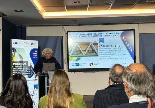 El tercer premiado ha sido pro clima, gracias a Kora Green City en Vitoria, el mayor edificio hotelero del mundo certificado con el estándar PHI (Passive House Institute). El proyecto ha conseguido reducir significativamente el consumo de energía en comparación con un edificio convencional. Esto ha sido posible gracias a la metodología Passive House y a los paneles fotovoltaicos y sistemas instalados en el edificio (geotermia para calefacción y refrigeración, aerotermia para calentamiento de agua, sistemas de recuperación de calor, sistemas de control de iluminación, etc.).